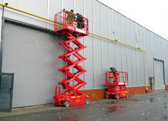 • Работы по внешней отделке зданий. С помощью подъемника можно оформить фасад, произвести покрасочные и отделочные работы. Работа по монтажу на ножничном подъемнике выполняется гораздо быстрее и эффективнее. Можно выполнять работы по мытью и очистке здания, по установке внешнего дополнительного оборудования. Остекление фасадов, ремонт и обслуживание инженерных коммуникаций — ножничный подъемник незаменим в любой ситуации.