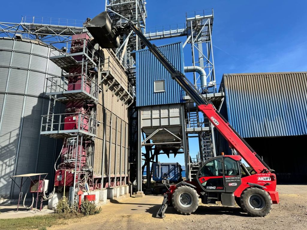 На агропредприятии или промышленном объекте нужно подать зерно или щебень в бункер сверху. Ковшовый погрузчик до верхней горловины не достанет, кран потребует отдельной строповки и расстроповки вручную на каждый цикл загрузки. Телехендлер с ковшом поднимет сыпучий материал на нужную высоту и точно высыпет в горловину — без заезда под основание ёмкости и без ручного труда.
