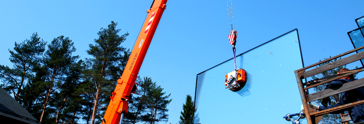 Если вес переносимого стекла 500 кг и более, то лучше использовать современный надежный вакуумный захват высокого качества, соответствующий всем нормам безопасности.