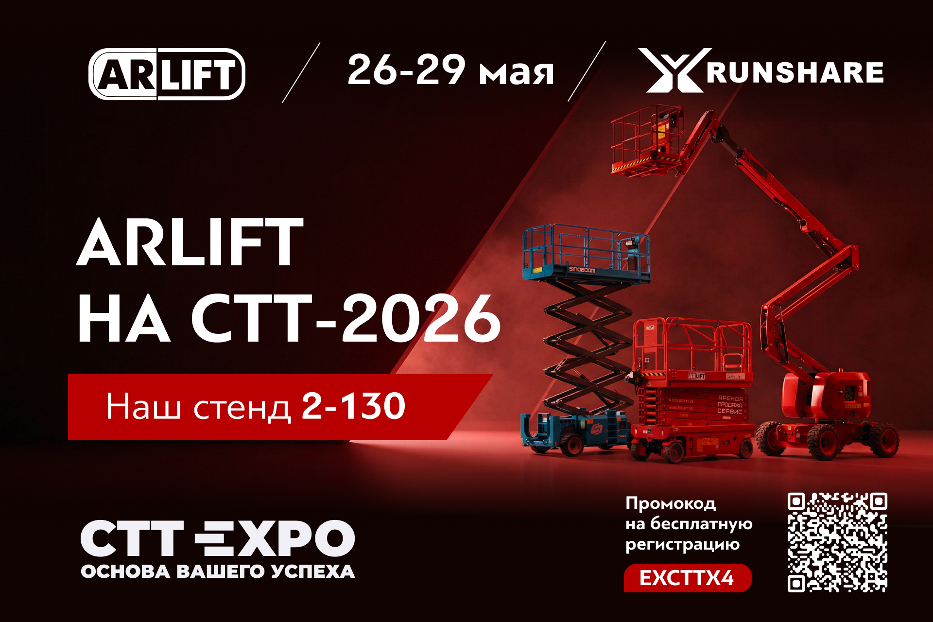 ARLIFT на выставке СТТ 2026 — стенд 2-130, промокод на бесплатную регистрацию | ARLIFT