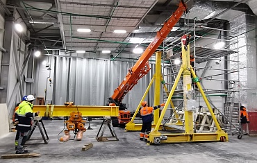 Мини-кран SPX1275 произвел сборку козлового крана в строящемся покрасочном цехе в Мурманске.