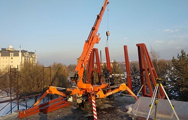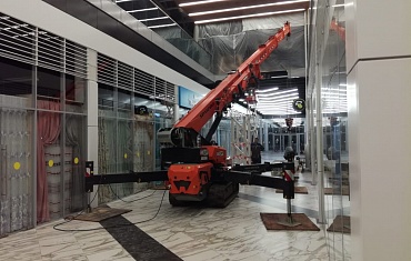 Новый мини-кран компании Арлифт произвел установку лестниц в одном из торговых комплексов Санкт-Петербурга.