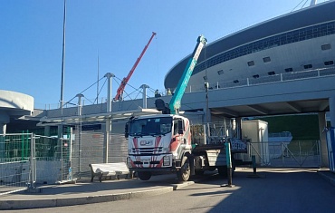 Мини-кран, вакуумный захват и кран-манипулятор компании Арлифт провели небольшой косметический ремонт пропускных пунктов на Газпром Арене.