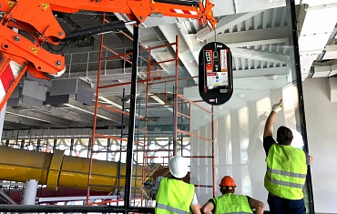 Мини-кран компании Арлифт произвел монтаж тяжелых и дорогих стеклопакетов в Аквакомплексе «Лужники»