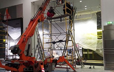 Реконструкция фасада Дворца Молодежи, Екатеринбург. Монтаж стекла весом 1100 кг
