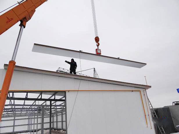 Монтаж кровельных сэндвич-паней 12 метров (ППУ).
