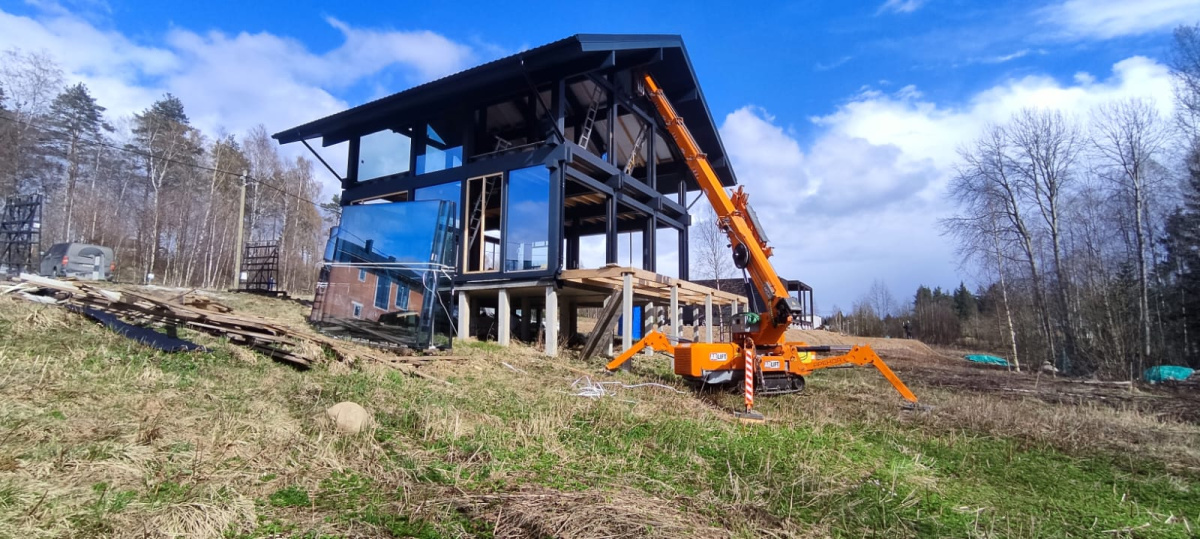 Остекление с перекрытий мини-краном Арлифт