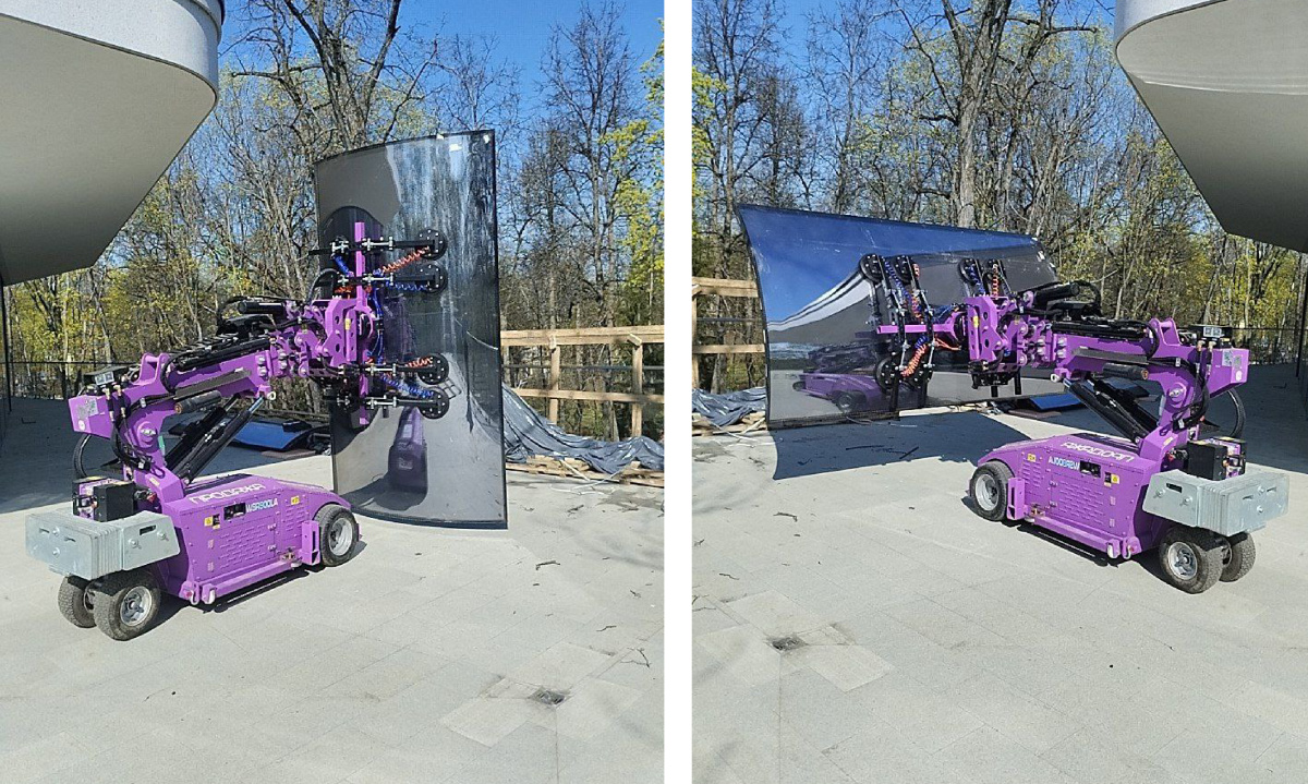 Монтаж радиального стекла с помощью стеклоробота Арлифт