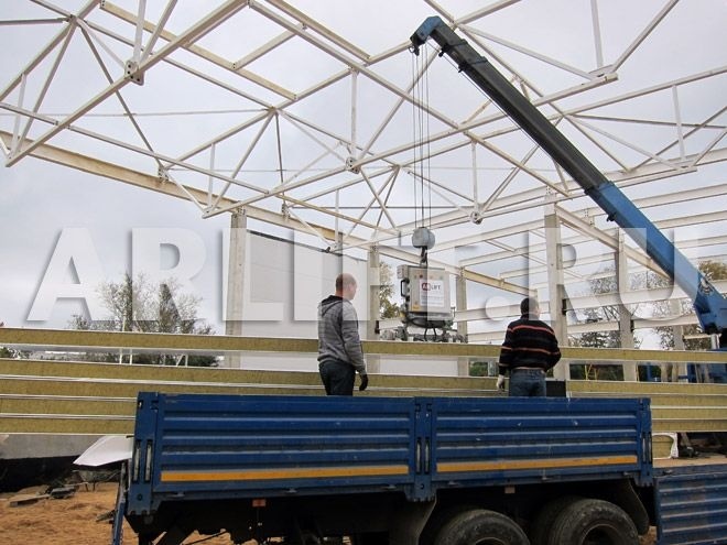 Вакуумное оборудование компании «Арлифт» произвело ряд монтажных работ в гипермаркете «Окей» города Гатчина. Была поставлена задача с помощью вакуумного захвата CladBoy 3 произвести горизонтальный монтаж стеновых сэндвич-панелей длиной до 9,5 м.