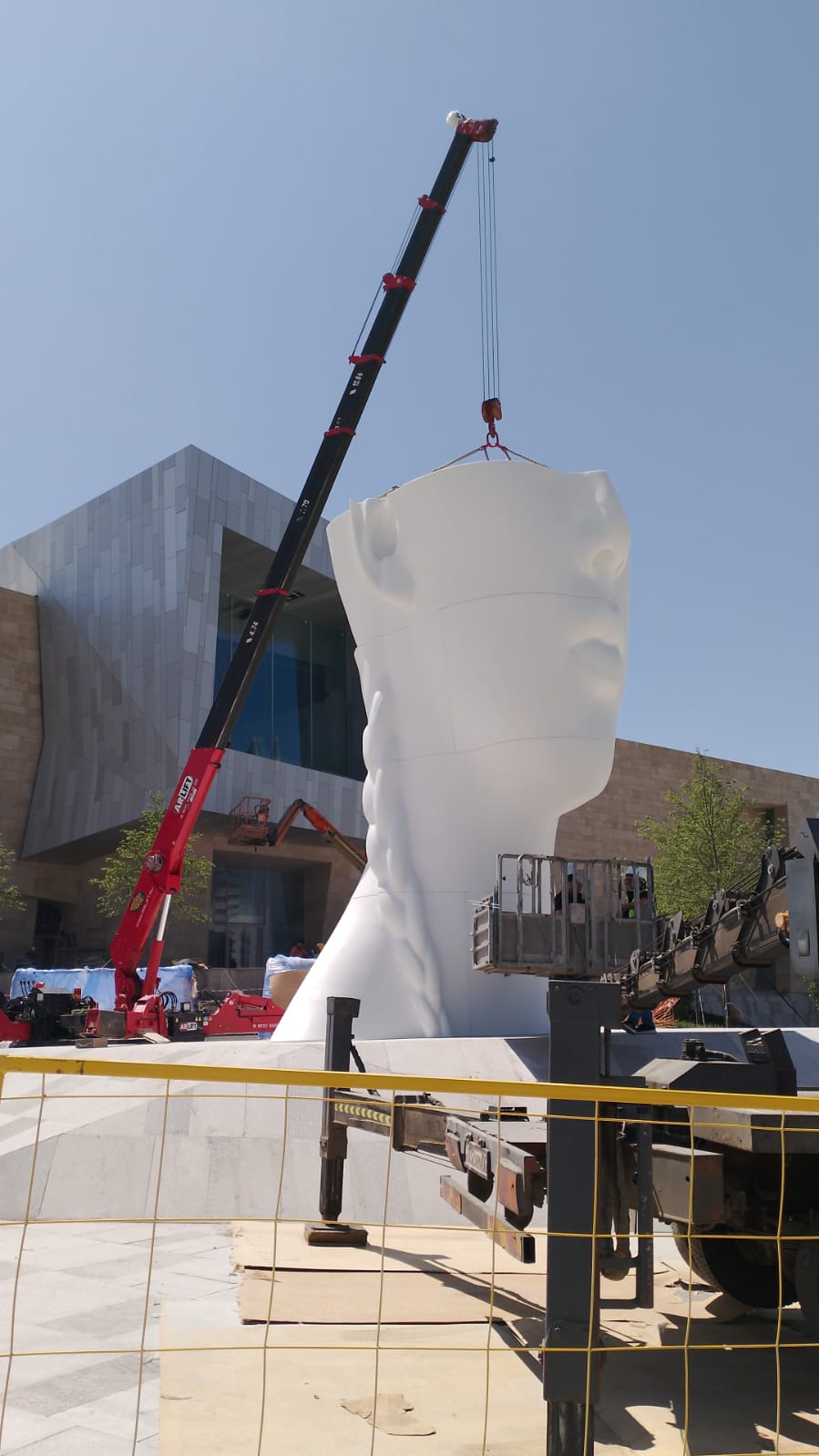 Статую нужно было собрать из деталей как пазл, точно совместив элементы по швам. Справились с помощью мини-крана URW547C2E и ножничных подъёмников LGMG 1012 и LGMG 0808